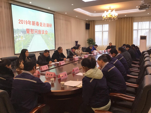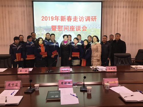 2019年1月18日,荆门市政协副主席陈芝凤,荆门市总工会党组书记、常务副主席朱秋娣等领导来到对口包联的公司开展新春走访调研。