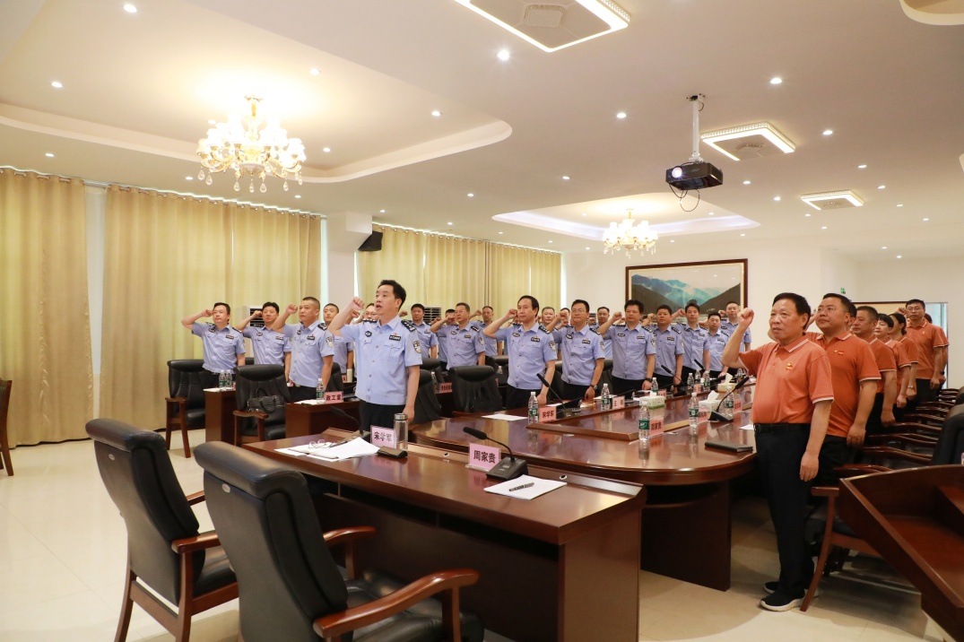 会上,全体人员重温入党誓词,金汉江精制棉有限公司董事长周家贵结合金汉江35年的发展历程和党建实践,系统分享了“三变三不变”“三个不”“三个办”等源自实践的宝贵党建经验,生动讲述了党建引领清廉建设、驱动科技创新、勇担社会责任、推动共同富裕的感人故事。民警代表结合岗位职责谈认识、讲体会、话担当,进一步明确了新时代公安民警辅警的职责使命和前进方向。